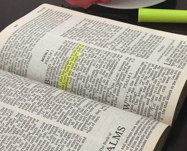 Psalm 1:1-2 tells of the path of the blessed. "Blessed is the one who does not walk in step with the wicked or stand in the way that sinners take or sit in the company of mockers, but whose delight is in the law of the Lord, and who meditates on his law day and night."